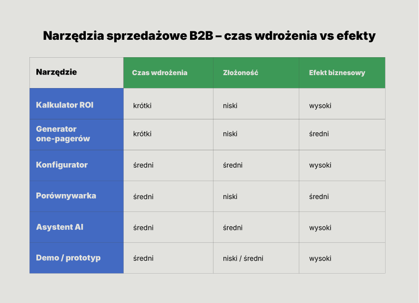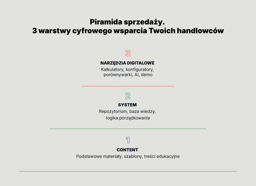 Dlatego firmy coraz częściej sięgają po dedykowane narzędzia digitalowe, takie jak miniaplikacje czy treści interaktywne. Są one łatwe w obsłudze, bardziej atrakcyjne w odbiorze niż standardowy, statyczny content i zwykle skuteczniej wyjaśniają zawiłości oferty. Z jednej strony stanowią one wsparcie dla klienta, a z drugiej dla handlowca – umożliwiając mu szybsze przejście od rozmowy do transakcji.